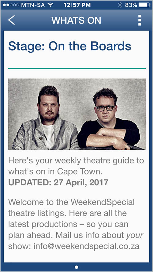 Weekend Special is an Arts and Lifestyle Mobile App that focuses on theatre, music, comedy, film, travel, tech and more. Why? Because Arts Matter. Because they’re pretty damn passionate about the stuff they watch, read, listen to and interact with. And because they want to share all that good stuff with you.